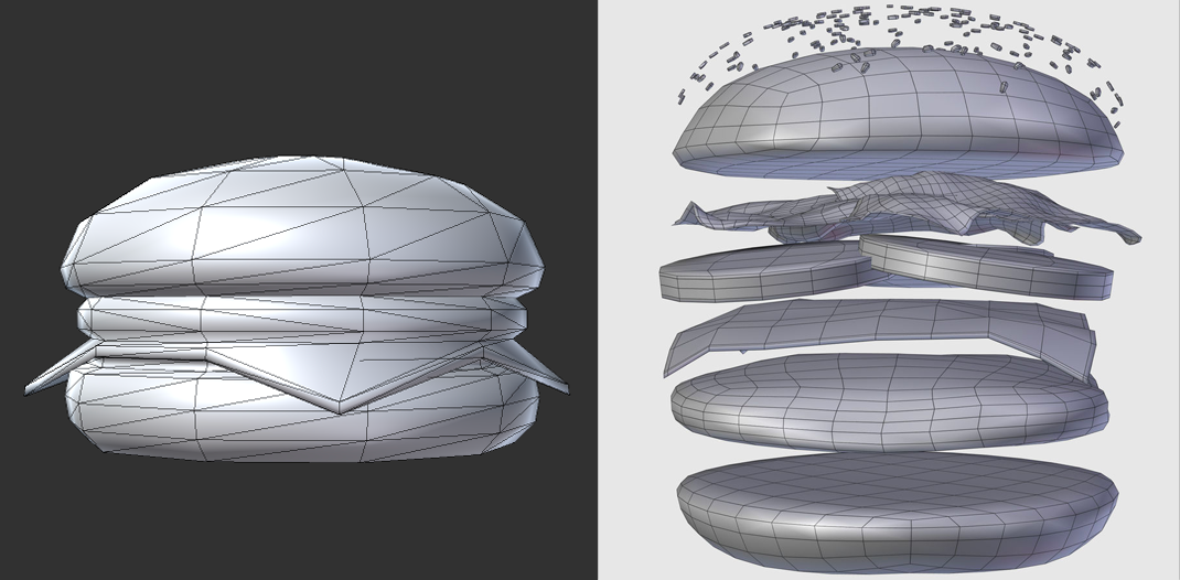 Interoperability is a key concept in Web3 as well. Once more using Everlast as an example, let’s look at how interoperability, as imagined in Web3’s canonical example of “transferring a sword between two games,” would unfold. At one point during your playthrough of Everlast, your player-character receives one cheeseburger in their inventory. Let’s imagine that a player of Everlast wants to use that burger in another hypothetical game–a food fight game in which the burger can be deployed as a weapon. How would this work today? To imagine today’s interoperability pipeline and extrapolate on it, we must first understand the anatomy of a typical game asset. At their most basic level, 3D assets are composed of polygon meshes and texture maps. A simple game asset might have only one texture map, while a more complex item might have multiple texture maps layered on top of one another to make the object look more realistic: these include bump maps, specular maps, displacement maps, etc. Game assets might also have multiple textures that vary in detail and swap out dynamically at runtime depending on how close you are to that object in the game. In addition to textures, some game objects have shaders, which are small scripts that typically handle the way that object’s surface reflects, emits, and absorbs light in accordance to the rules of that game’s lighting system. Each game engine simulates lighting in a different way, making it necessary for a developer to rebuild shaders when moving an asset between two game engines. Game objects also have some combination of programmed behavior, sound effects, animation effects, rigging, and a myriad of other custom attributes. Going back to the cheeseburger in Everlast, let’s imagine that for my game, the asset consists of one solid mesh, meaning that the lettuce, cheese, onions, patty and buns are fused together into one blob, and covered by one texture map. I did it this way because I wanted the asset to be simple. Now imagine that in the food fighting game I’d like to be interoperable with, the burger needs to dramatically fly apart on impact after you hurl it at your opponent, sending all the layers of the burger flying in opposite directions. That asset would need to be composed in a totally different way, with each layer of the burger appearing as its own mesh, and each mesh requiring its own texture map. Of course, you can’t currently store such a complex collection of files as an NFT. Even if you could, the amount of manual coordination, asset recreation and coding required between me and the developers of the second game would be significantly labor-intensive. The above was a relatively simple example of the kind of work that goes into transferring one asset across two games, but the complexity ramps up exponentially from there as you consider game objects with more robust behavior. For further reference, see: